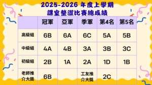 2025-2026年度「班際課室整潔比賽」圓滿結束!