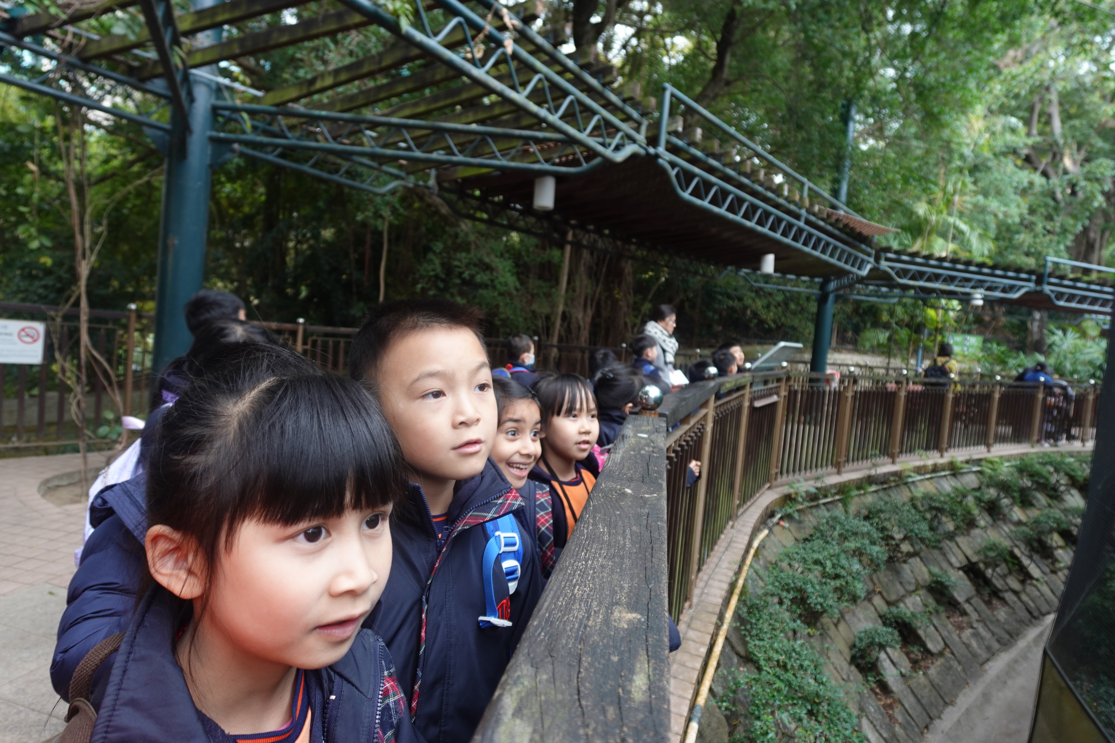 五年級同學於戶外學習日到香港公園參觀,一定要鳥籠觀看稀珍雀鳥啦﹗學生除了看見雀鳥在吃水果外,還有瀕危的長冠八哥飛到行人通道上,讓同學近距...