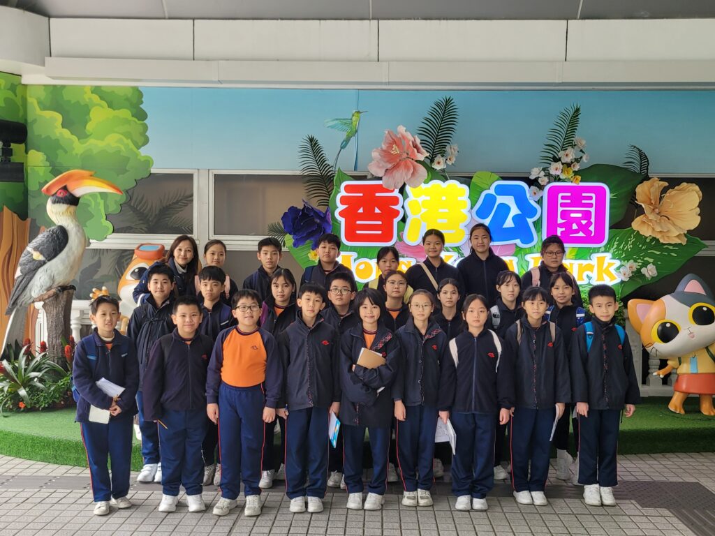 五年級同學於戶外學習日到香港公園參觀,一定要鳥籠觀看稀珍雀鳥啦﹗學生除了看見雀鳥在吃水果外,還有瀕危的長冠八哥飛到行人通道上,讓同學近距離觀看 。此外,學生亦在温室觀看千奇百怪的植物,有水生植物、有熱帶植物等。同學們能在輕鬆和優美的環境下學習,相信他們獲益良多。