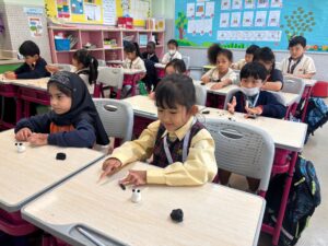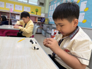 本年度一年級的跨學科課程主題是「麪塑技藝」,通過遊戲、動手製作、分享與展覽的方式,讓學生在充滿趣味和成就感的體驗中,達成了多重教學目標。學生親手製作以十二生肖為主題的麪塑公仔,並作出展覽,欣賞同學們的作品。這個課程能將傳統文化傳承、藝術啟蒙、動手實踐和語言表達融合在一起,為低年級學生開啟了一扇瞭解中華優秀傳統文化的生動視窗。學生們完成的作品,不僅是手工成果,更是他們與傳統文化第一次“對話”的珍貴紀念。