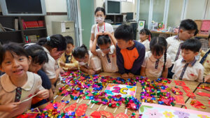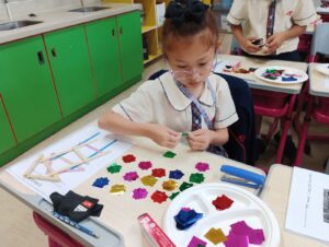 本年度二年級的跨學科課程主題是「花牌紮作技藝」,這個課程將傳統技藝、多學科知識、動手實踐、藝術教育和文化認同融合為一個整體。對二年級學生而言,這是一次充滿樂趣、色彩和成就感的學習體驗。他們製作的每一個花牌,不僅是手工作品,更是他們與傳統文化建立的一次生動對話。這樣的課程設計,真正做到了讓非遺“活”起來,並在孩子心中播下文化自信的種子。