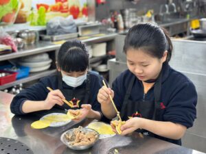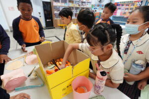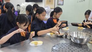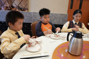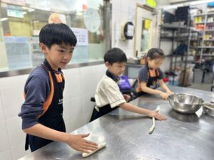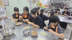 本年度四年級的跨學科課程主題是「茶樓文化」,課程從趣味遊戲開始,引導學生認識茶樓非遺。隨後,學生們親赴傳統酒樓,學生學習點餐、核算、預算,完成文化與實踐的結合。為深入瞭解點心技藝,同學們還走進廚藝學院,親手製作燒賣,體驗點心製作的匠心。