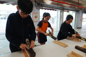 在掌握基礎後,同學們運用所學榫卯技術,成功製作小木椅。製作過程中,每一步都考驗著他們的耐心及專注。同學們更向低年級同學展示親手製作的木椅,並分享了學習心得。這不僅是一次技能的實踐,更是一次傳統文化的生動傳承,讓工匠精神在校園紮根。