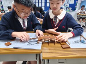 本年度六年級的跨學科課程主題是「木家具製作技藝」。課程從認識魯班先師的故事開始,學生重點學習了傳統木工核心——榫卯技術,通過親手拆解、拼裝,理解其結構與力學原理。