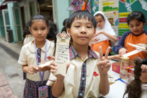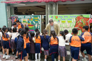 During the English subject Ching Ming Festival booth activity, students participated enthusiastically. After receiving a kite-shaped bookmark, students wrote down their wishes or blessing messages in English, expressing their hopes for the new year. Through this activity, both local and NCS students were able to deepen their understanding of Ching Ming traditions while sharing heartfelt messages and blessings with one another, creating a warm and meaningful atmosphere of cultural exchange.