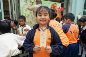 在英文科清明節攤位活動中,學生踴躍參與。同學領取風箏圖案書簽後,紛紛寫下英文祝福語或願望,寄託對新一年的美好期盼。透過這次活動,華語及非華語學生不僅加深了對清明節傳統文化的認識,也藉此分享彼此的心意與祝福,營造出融洽而有意義的交流氛圍。