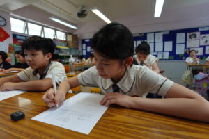 在小息及午息時段,國民教育及國家安全教育組設置攤位遊戲,以互動方式加強學生對國家安全的理解;同時於雨天操場播放與香港非物質文化遺產-長衫相關的短片,拓展學生文化視野。導修課則安排觀看教育短片,並由科任老師引導學生反思守法遵規的重要性,進一步培養守法意識與公民責任感。