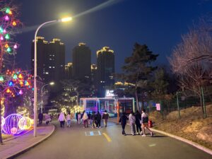 早上,呂校長帶領三位教職員與19位五、六年級學生在香港機場集合,啟程前往青島,再轉乘旅遊巴抵達威海。抵達後,師生們首先走訪火炬八街,感受這座海濱城市的獨特風情,同學們紛紛拍照打卡留念。隨後大家前往餐廳品嘗地道特色美食,並辦理酒店入住,為接下來的交流活動做好準備。