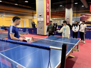 第三日上午,師生們走訪「威海南海乒乓球訓練科普基地」,深入了解乒乓球運動的發展歷程與專業訓練環境。同學們在專業教練員的講解下,親身感受國家隊級別的訓練場地氛圍,並透過互動體驗加深對這項「國球」的認識。