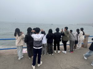 下午,師生們前往青島展開城市文化探索之旅。首先來到「五四廣場」,欣賞象徵性雕塑「五月的風」與壯麗的濱海景致,並了解廣場背後的歷史意涵。隨後走訪「八大關」,漫步於融合多國建築風格的街區,感受青島獨特的歷史人文底蘊與浪漫氛圍。