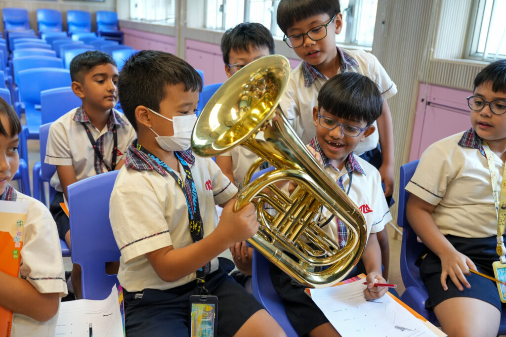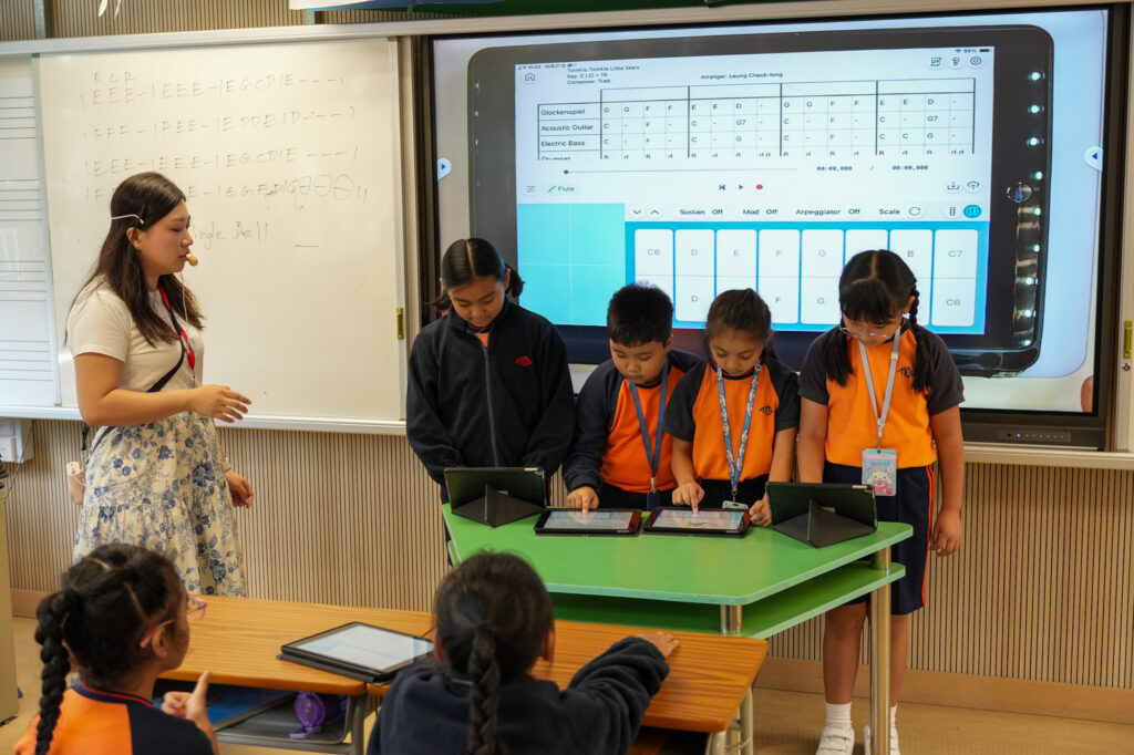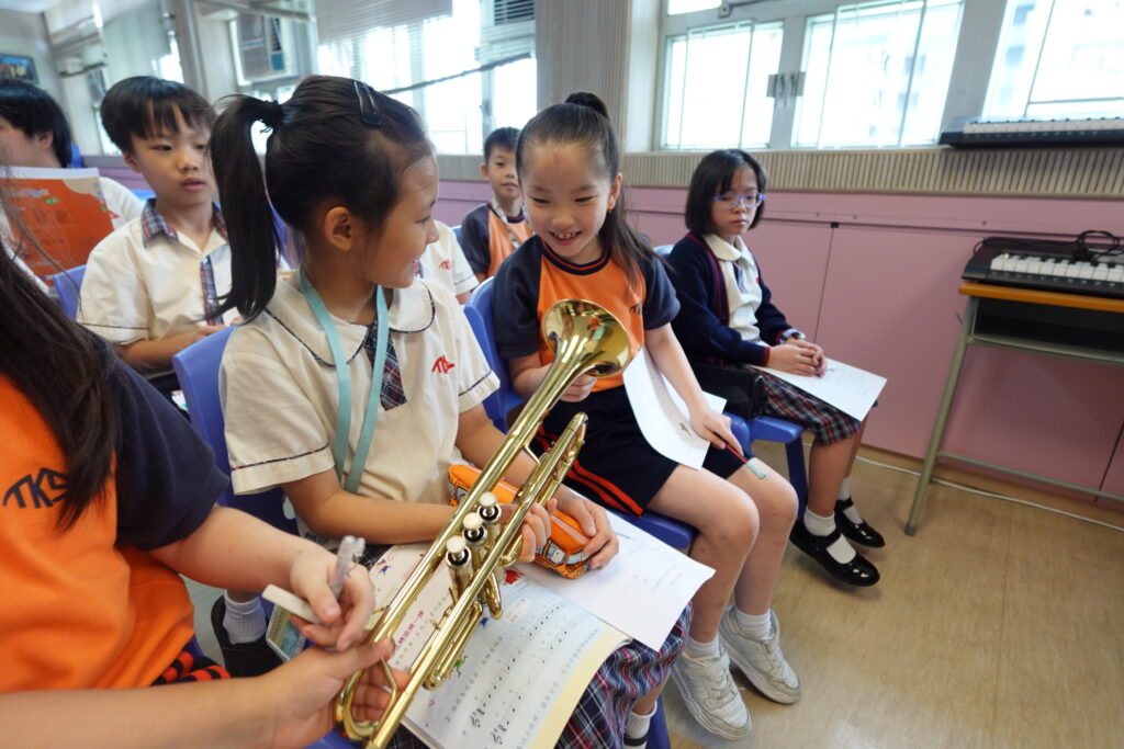 學生學習利用e-Orch 應用程式進行電子合奏活動。學生揀選指定管樂器,於班中與同學合奏,感受樂團演奏,提升學生對演奏的興趣及團體合作精神,並讓他們分享演奏感受。