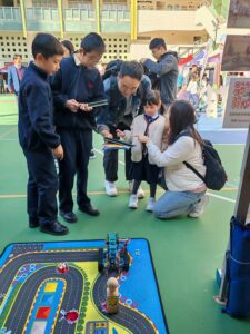 當日,校長、老師與本校服務生積極投入及熱心推廣學校,讓更多區內幼稚園家長深入了解本校特色。學校亦特別為幼稚園學生準備攤位遊戲,由服務生帶領小朋友體驗 mBot Ultimate 機器人操作,寓學習於遊戲,氣氛熱烈。